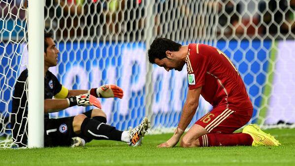 ولاحت فرصة حقيقية لمنتخب إسبانيا للتسجيل في الدقيقة 15، عبر تمريرات قصيرة داخل منطقة الجزاء لكن الحارس التشيلي برافو أحبطها قبل أن يشتتها الدفاع بصعوبة.