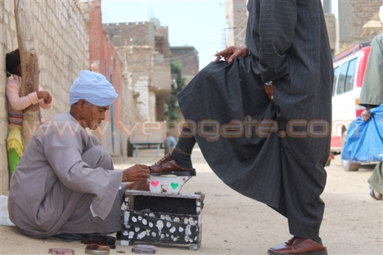 وعملت الحاجة ‘صيصة’ التي ترتدي الجلباب الصعيدي البلدي، والعمة البيضاء والطاقية التي يظهر منها الشعر الأبيض، وحذاء أسود رجالي، في العيد من الأعمال الشاقة بدءًا من حمل الطوب وقصرية الأسمنت حتى مسح الأحذية.