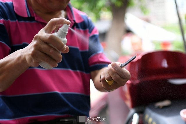 ويستخدم العجوز البالغ من العمر 62 عاماً تقنية قديمة لتنظيف القذارة الموجودة في العين التي يزعم أنها تؤثر على الرؤية.