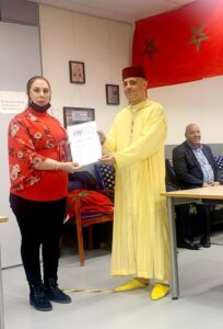 بالمناسبة،ثم تكريم شخصيات وازنة من الشرطة الهولندية ورجال المطافئ،من بينهم رئيس مكتب الشرطة”ضولف فن دايك” وزهير الجبيح”ضابط في الوقاية المدنية.