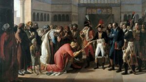 عندما رسي أسطول بونابرت (29 عاما) بالقرب من الإسكندرية في ليلة الثاني من يوليو/تموز عام 1798 وعلى متنه 38 ألف جندي تقلهم أكثر من 300 سفينة، أمر الجنود بكتابة رسالة على الجدران، مفادها: “أيها المصريون ، سيقال لكم إنني قادم لتدمير دينكم: إنها كذبة ، لا تصدقوها!”