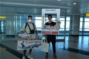 وقد حرصت مصر للطيران على استقبال ركاب الرحلة والتقاط الصور التذكارية معهم، كما قامت الشركة بتعلية درجة السفر إلى درجة رجال الأعمال لأول راكب تواجد على كاونتر إنهاء إجراءات السفر، كما قدمت شركة مصرللطيران للأسواق الحرة 10 % تخفيض على العديد من منتجاتها للركاب المسافرين على رحلتى الذهاب والعودة، ومن المخطط إقامة فاعليات لاستقبال الرحلة بمطار دوسلدورف احتفالا بإعادة تشغيل الرحلات.