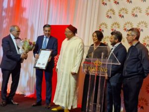 مغاربة هولندا يكرمون مسؤولا عن شركة لارام السيد عبد الكبير عدي في حفل إفطار رمضاني بأمستردام.‎‎