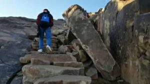 تجمعنا عند سفح الجبل. يكرر المرشد تحذيراته من أن يسبقه أحد، أو من الركض، وينصح بتتبع ضوء كشاف من يسبقنا، ويحذر من التلكؤ عند الشعور بالتعب، فهناك منحنيات سنتوقف فيها معا لالتقاط الأنفاس، قبل مواصلة الرحلة باتجاه “السلالم”، ثم جاء التحذير الأخطر”إياكم والجِمال”..
