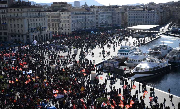 أطلقت النقابات العمالية موجة ثالثة من الإضرابات على مستوى فرنسا، اليوم الثلثاء، احتجاجا على خطط الرئيس إيمانويل ماكرون لجعل المواطنين يعملون لفترة أطول قبل التقاعد مع بدء عملية لتمرير التشريع في البرلمان. وأُلغيت خدمات للسكك الحديدية وتعطلت المدارس وتوقف شحن المنتجات النفطية من المصافي مع انسحاب العمال في قطاعات عديدة. ودعت النقابات المواطنين مرة أخرى إلى النزول للشوارع بأعداد كبيرة. وتقول الحكومة إنه يتعين على الناس العمل لعامين إضافيين، أي حتى سن 64 بالنسبة لمعظم الناس، من أجل الحفاظ على ميزانية أحد أكثر أنظمة التقاعد سخاء في العالم الصناعي. وأظهرت استطلاعات الرأي أن الفرنسيين يقضون أكبر عدد من السنوات بعد التقاعد بين دول منظمة التعاون والتنمية الاقتصادية، وهي ميزة ترفض الغالبية العظمى منهم التخلي عنها. ورفض وزير العمل أوليفييه دوسوبت اتهامات المعارضة بأن الحكومة تنكر حجم الاحتجاجات التي خرجت في شوارع البلاد الشهر الماضي وقال إن التغيير ضروري. وأوضح لراديو “آر.إم.سي” أن “نظام معاشات التقاعد يتكبد خسائر، وإذا كنا نهتم بالنظام، فعلينا الحفاظ عليه”. ولفت زعيم الكونفدرالية العامة للشغل فيليب مارتينيز، إلى أن ماكرون يلعب “لعبة خطيرة” بالمضي قدما في إصلاح لا يحظى بشعبية كبيرة في وقت تواجه فيه الأسر تضخما مرتفعا. وتقول الحكومة إن الإصلاح سيسمح بإدخار ما يزيد على 17 مليار يورو (18 مليار دولار) سنويا بحلول عام 2030. ويوجد أكثر من 20 ألف تعديل أمام نواب البرلمان، لكن نظرا لإدراج الإصلاح في مشروع قانون للضمان الاجتماعي السنوي فقد ترسله الحكومة إلى مجلس الشيوخ بعد أسبوعين فقط