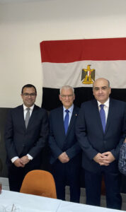 و نوه أيضا بان السفارة المصرية بلاهاي هي بيت لكل المصريين وان أبوابها مفتوحة لخدمة الجميع ، ثم دارت حوارات بين الضيوف بعضهم ببعض وأيضا مع أعضاء السفارة وتم اخذ صور تذكارية جماعية