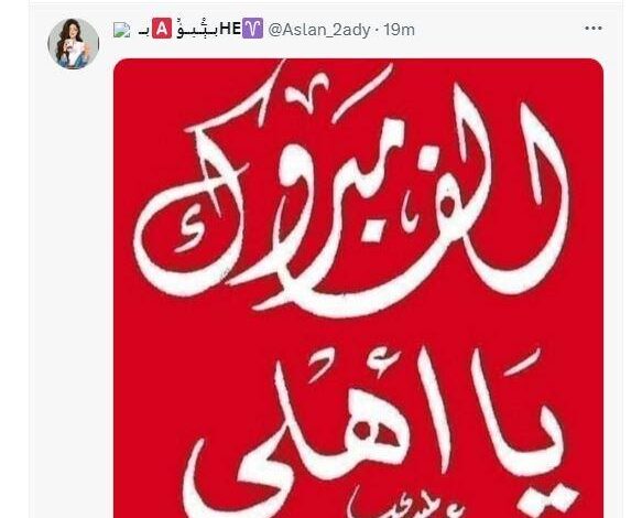 هنأ الفنان نبيل الحلفاوي النادي الأهلي وذلك بعد فوزه مساء أمس الجمعة على غريمه الترجي التونسي بنتيجة 4 مقابل لا شئ في مجموع مباراتي الذهاب والإياب ليصعد الأهلي لنهائي دوري أبطال أفريقيا وعلق الحلفاوي عبر تغريدة نشرها على حسابه الرسمي “تويتر” قائلاً “ألف مبروك الأهلي في النهائي كما عودنا وعود أفريقيا”، ولاقت تغريدته إعجاب متابعيه وعلقوا كالتالي “يارب يا عالي أنصر الأهلي الغالي، ألف مبروك لكبير الأهلاوية مبروك عليك وعلينا أستاذ نبيل، الأهلي بابا الشغلانة، مبروك علينا يا قبطان، مبروك يا قبطان الأهلي وكفي”. وانتهى