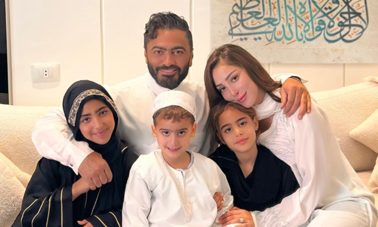 أثار النجم المصري تامر حسني حيرة جمهوره، بعد نشره صورة تجمعه بأسرته ظهرت فيها زوجته السابقة، الفنانة المغربية بسمة بوسيل.