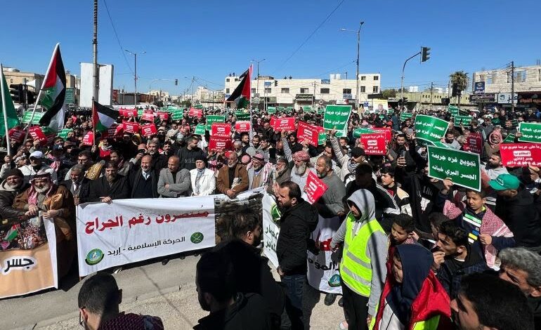 رفض الجسر البري.. عنوان فعاليات مناصرة غزة الأبرز في الأردن