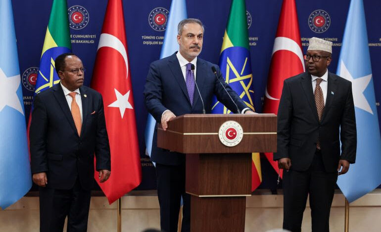 وقالت وزارة الخارجية التركية إن فيدان استضاف نظيريه الإثيوبي والصومالي في أنقرة، مضيفة أن الوزراء الثلاثة وقعوا على بيان مشترك بعد محادثات “صريحة وودية وتستشرف المستقبل” فيما يتعلق بحل الخلافات بين البلدين.