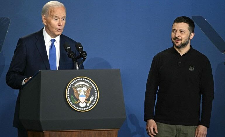 ارتكب الرئيس الأميركي جو بايدن هفوة جديدة الخميس خلال قمة حلف شمال الأطلسي (الناتو) في واشنطن بتقديمه الرئيس الأوكراني فولوديمير زيلينسكي على أنّه “الرئيس بوتين“، قبل أن يصحّح خطأه.