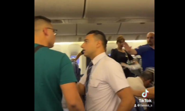 تداول رواد مواقع التواصل الاجتماعي العديد من مقاطع الفيديو، التي رصدت أزمة داخل طائرة تابعة لشركة مصر للطيران المتجهة من مطار القاهرة إلى نيوجيرسي.