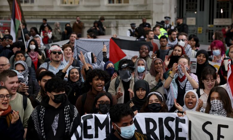 وقال غانم، وهو الآن طالب يبلغ من العمر 22 عاما ويدرس في لندن، لشبكة CNN في ديسمبر/كانون الأول: “لم يكن يسمح لأحد أن يقول أي شيء. عندما تُعارض النظام، الجميع يشعرك بأنك شخص مجنون”. ونشأ غانم، وهو من جيل “الربيع العربي”، في ظل الاستبداد في القاهرة. يتذكر أنه شهد بنفسه مجزرة رابعة “المروعة” عام 2013، ويقول إنه تعرّض للاضطهاد السياسي من قِبل السلطات المصرية قبل أن ينتقل إلى المملكة المتحدة في عام 2022 للدراسة. والآن، يواجه ما يصفه بـ”مصر..جولة ثانية” في مؤسسة أكاديمية مرموقة في بريطانيا بعد مشاركته في احتجاجات مؤيدة للفلسطينيين، مما أدى إلى اتخاذ إجراءات تأديبية ضده قد تؤدي إلى ترحيله خلال أيام. وفي مايو/أيار، أوقفت الإدارة العليا في كلية كينجز كوليدج لندن (KCL) غانم عن العمل لأجل غير مسمى، وشرعت في إلغاء كفالة تأشيرته، وذلك عقب 3 مراجعات لمشاركته في احتجاجات قادها طلاب، والتي تدعو لتحرير الشعب الفلسطيني من القصف والحصار الإسرائيليين في غزة. ووجهت كلية KCLاتهامات لغانم بسوء السلوك غير الأكاديمي، موضحة “المخالفات التنظيمية” و”الإجرائية”، و”المخاوف المتعلقة بالصحة والسلامة”، و”السلوك الهجومي أو المسيء” و”عرقلة النشاط”، بحسب رسالة أرسلتها القيادة العليا.