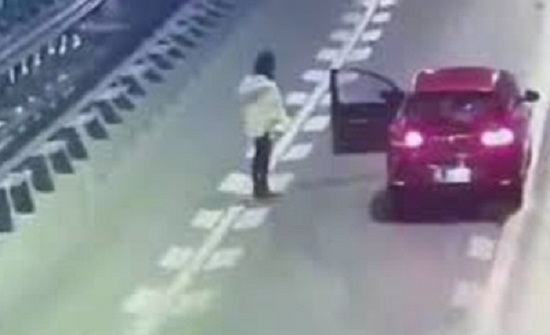 بالفيديو : مشاجرة بين شاب وحبيبته تنتهي بنومها في منتصف طريق سريع