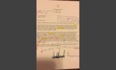 ترامب راسب في اللغة الإنجليزية .. معلمة تكشف أخطاء رهيبة في رسالة تلقتها من الرئيس