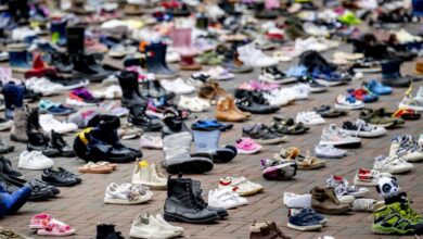 مدينة روتردام بهولندا في حفل تحت شعار “أوقفوا الإبادة الجماعية في غزة”. وضع 8 آلاف حذاء لأطفال في ساحة المدينة…