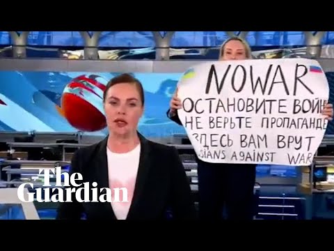 اقتحمت موظفة في القناة الأولى الروسية البرنامج الإخباري الرئيسي للاحتجاج على غزو أوكرانيا، رافعة لافتة كتب عليها “أوقفوا الحرب”. ودخلت، مارينا…