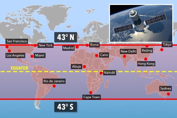 خريطة محتملة لمناطق سقوط الصاروخ الصيني الطائش .. من بينها بلد عربي