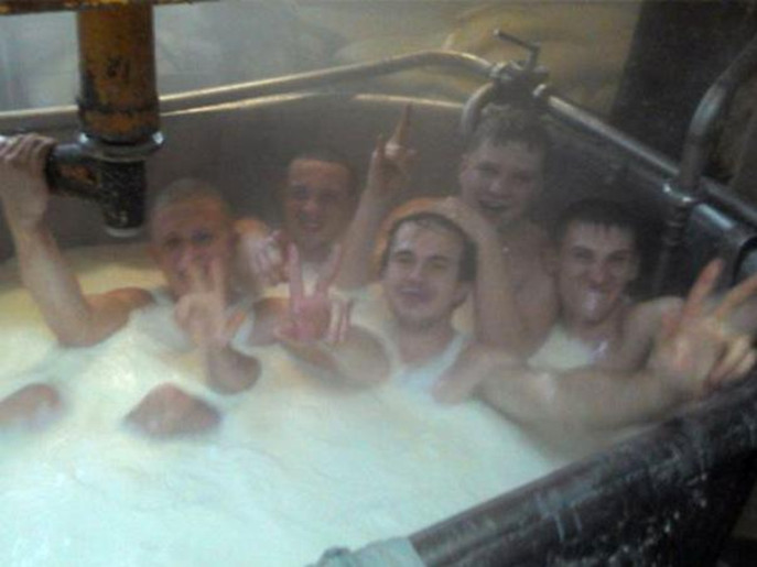 ضجة بعد نشر صور لعمال روس عراة بحوض للحليب بمصنع جبنة